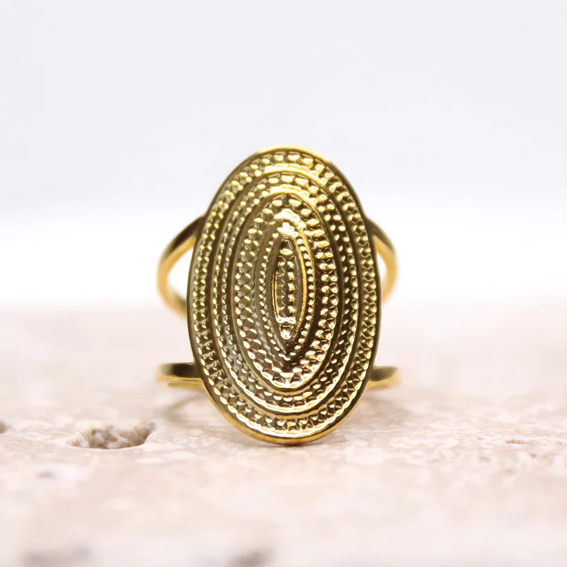 Elevate your elegance with this oval-shaped ornate ring, crafted to make a timeless statement. Featuring intricate detailing and a gracefully curved silhouette, this piece adds a touch of sophistication to any outfit. Whether worn alone or stacked, it’s the perfect accessory for those who appreciate refined beauty and classic charm.